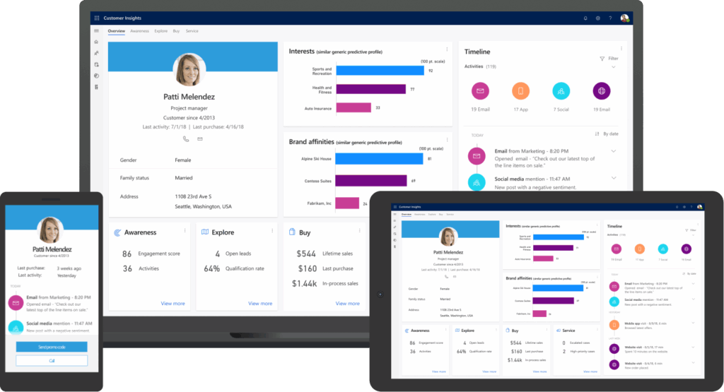 - Seamless integration with Microsoft Cloud, Office 365, LinkedIn, and other data sources for a unified view.
