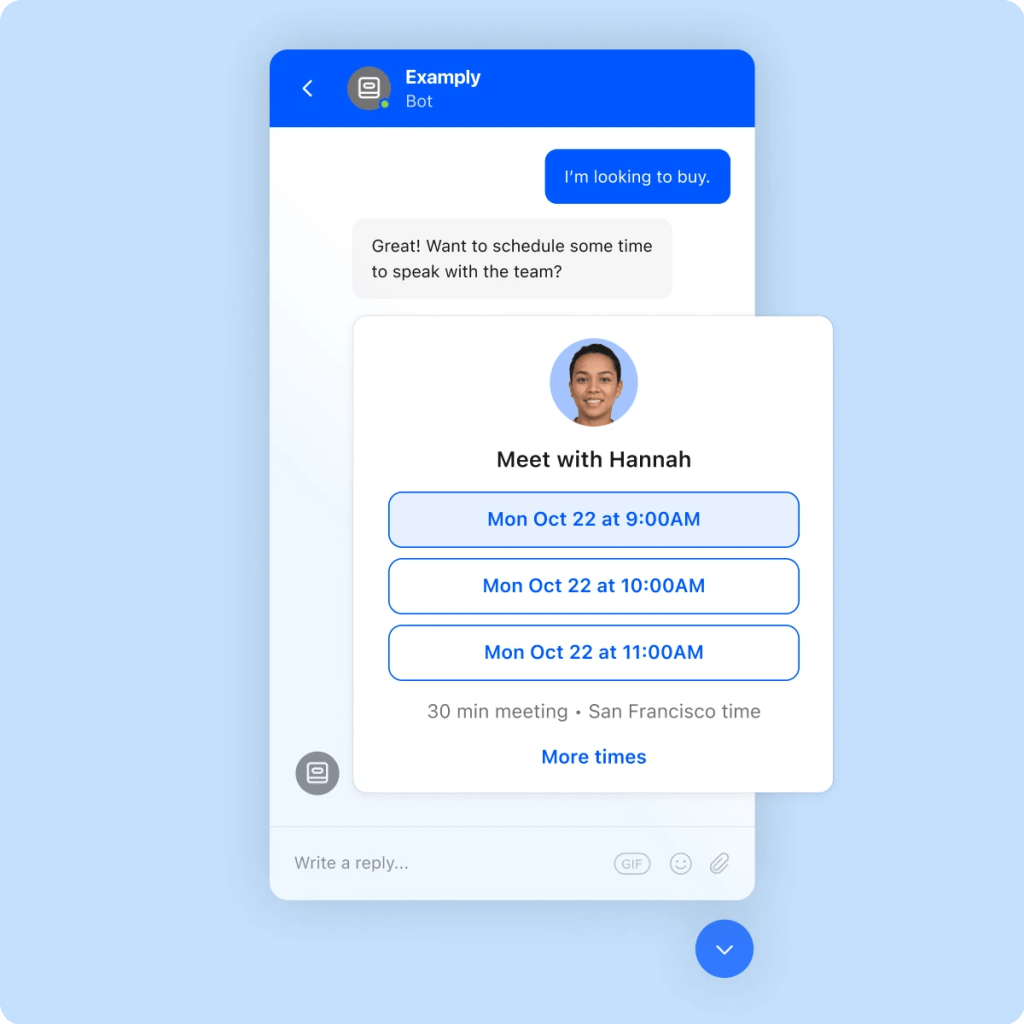 - Automated Scheduling of Meetings. Book sales demo’s or support calls live and in the moment.